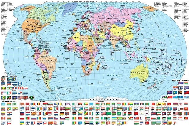 Карта, на якій показано певним кольором держави земної кулі, їх кордони, столиці, найбільші міста, транспортні магістралі, називається